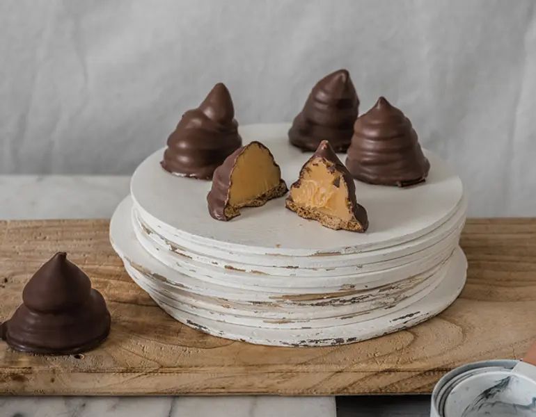 El Volcán Keto es una explosión de sabor en tres capas: base crujiente de galleta de almendra, corazón suave de manjar sin azúcar y una intensa cobertura de chocolate 80% cacao.